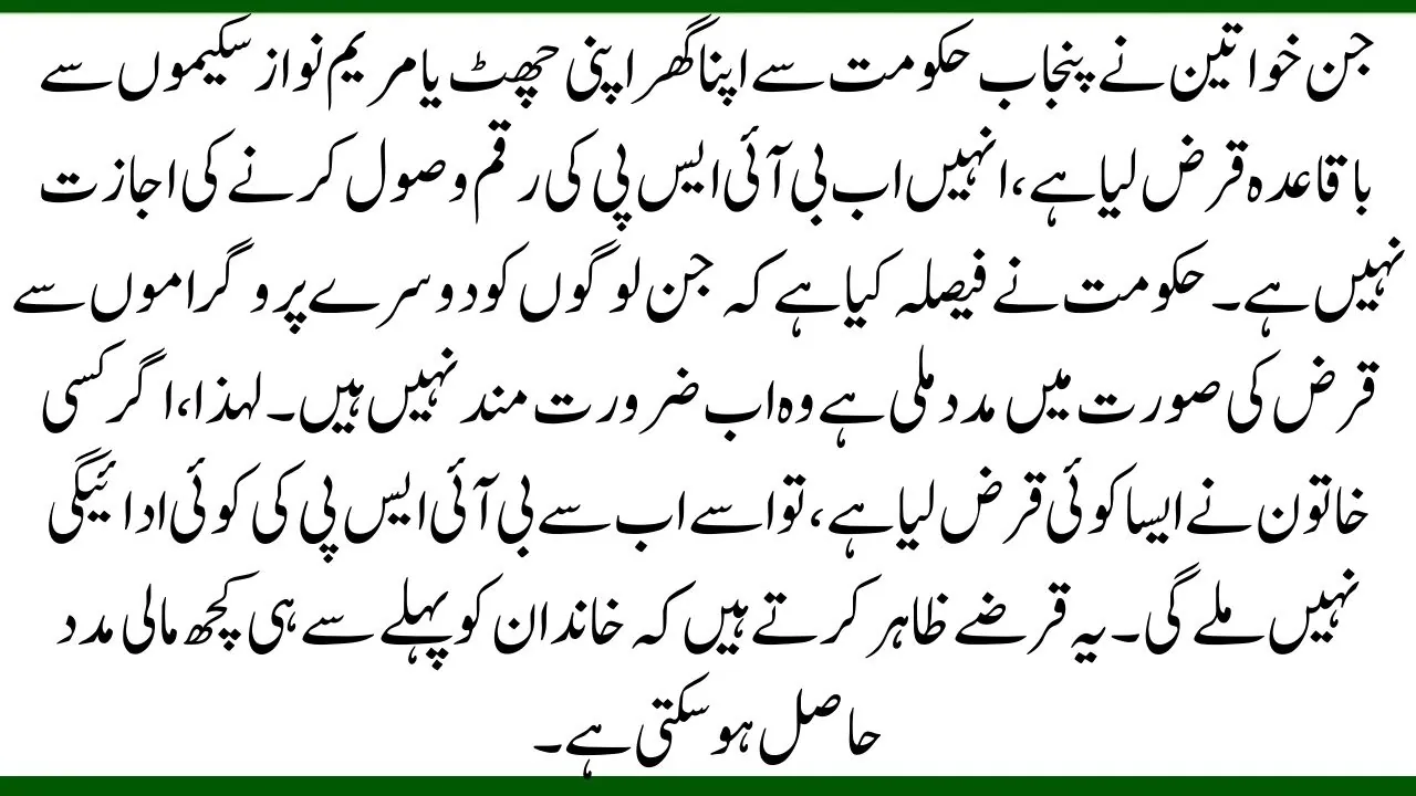 Women who have taken regular loans from the Punjab government, like Apna Ghar Apni Chhat or from Maryam Nawaz schemes, are now not allowed to receive BISP money. The government has decided that people who have received help in the form of loans from other programs are no longer needy. So, if a woman has taken any such loan, she will not get any BISP payment from now on. These loans show that the family may have some financial support already.