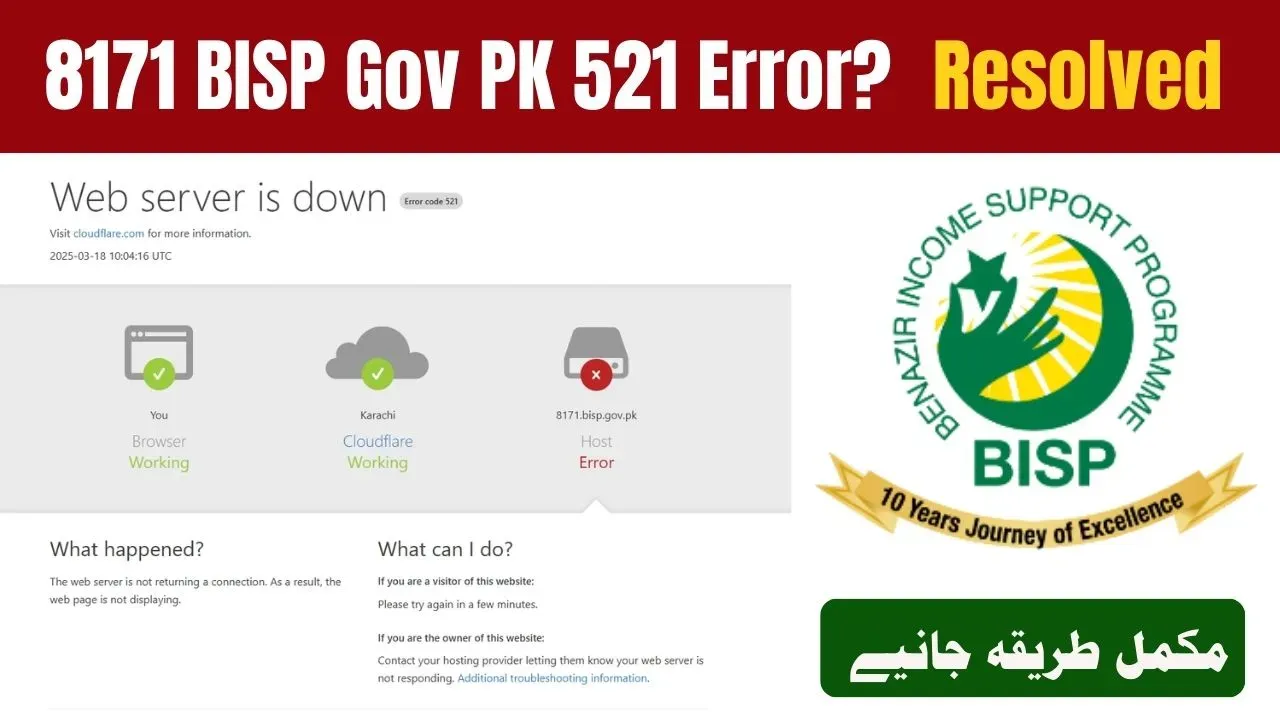 The 8171 BISP Gov PK 521 Error is a common issue faced by many users of the Benazir Income Support Program (BISP). This error usually occurs when individuals are trying to check their payment status through the official BISP web portal or SMS service. The error can be frustrating, especially when you’re eager to know if you’re eligible for the financial aid. However, there are alternative methods to check your payment status if you face this error. This article explains these methods in simple language to help you stay updated about your BISP status and avoid confusion.