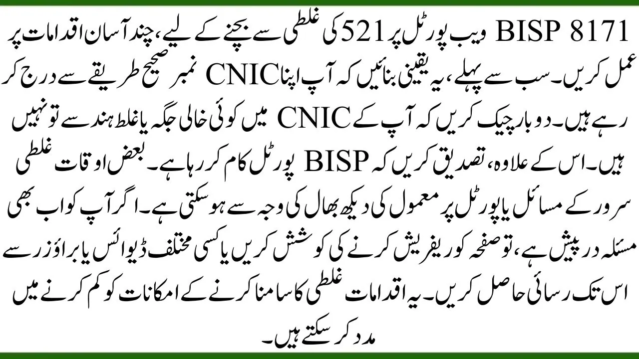 8171 BISP Gov PK 521 Error? Alternative Method to Check Your Status