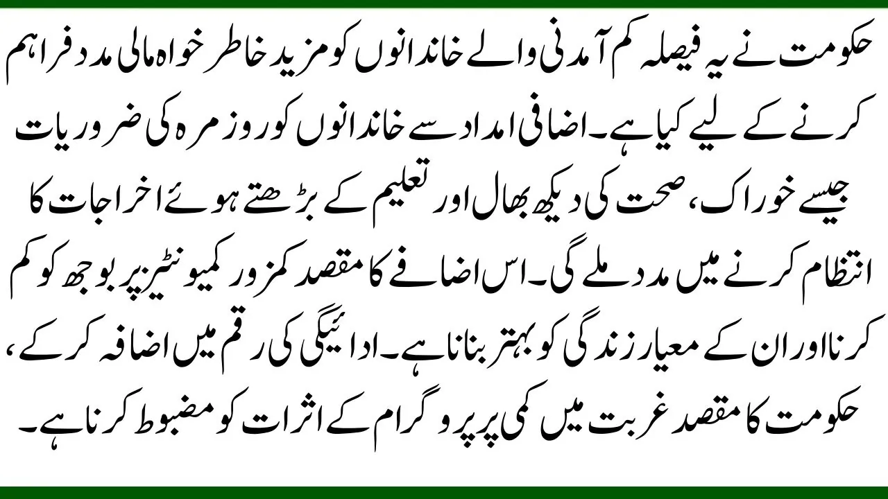 | Increased payment amount | 13,500 PKR for inflation support |
