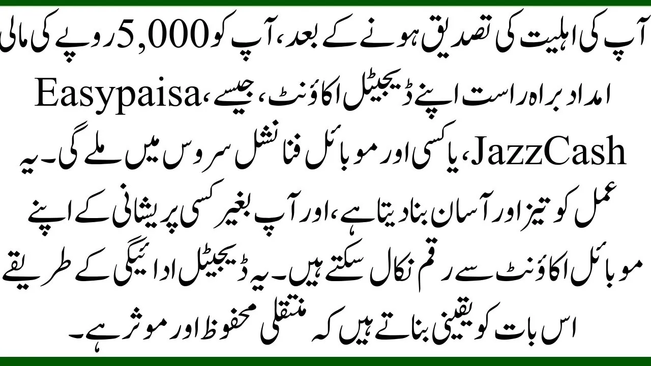 If you are eligible, the Rs 5,000 financial assistance will be transferred to your Easypaisa, JazzCash, or another digital banking account. You can then withdraw the amount directly from your account.