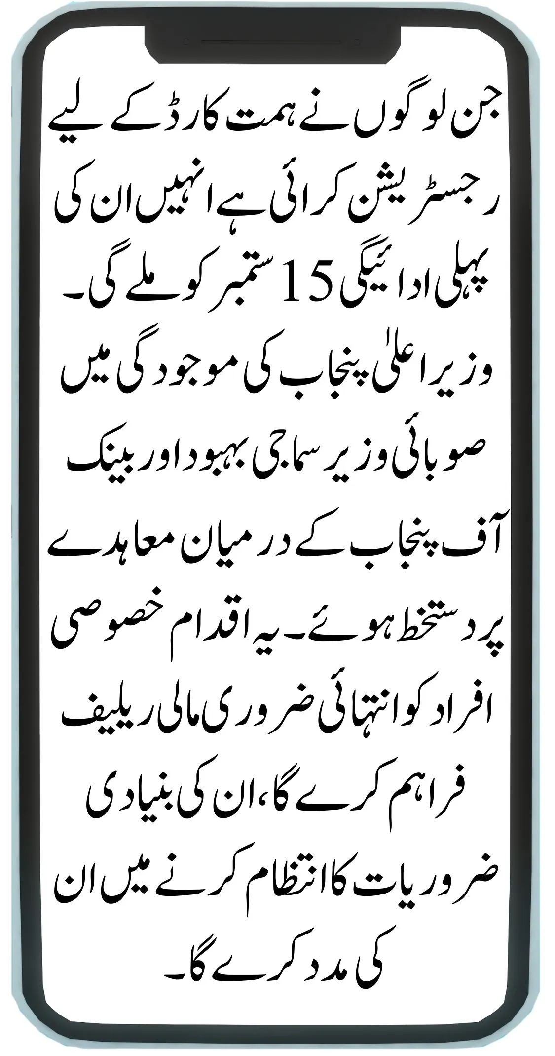People who have registered for the Himmat Card will receive their first payment on 15th September. The agreement was signed between the Provincial Minister of Social Welfare and the Bank of Punjab in the presence of the Chief Minister of Punjab. This initiative will provide much-needed financial relief to special persons, helping them manage their basic needs.