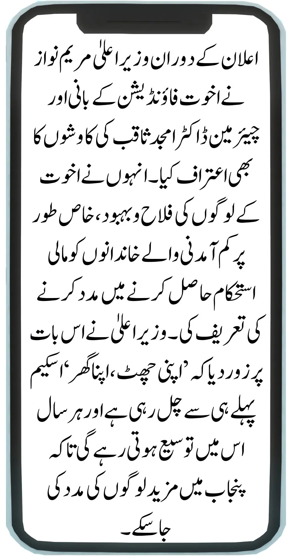 During the announcement, CM Maryam Nawaz also acknowledged the efforts of Dr. Amjad Saqib, the Founder and Chairman of Akhuwat Foundation. She praised Akhuwat’s contributions to the welfare of the people, especially in helping low-income families achieve financial stability. The Chief Minister emphasized that the ‘Apni Chhat, Apna Ghar’ scheme is already underway and will continue to expand each year to support more people in Punjab.