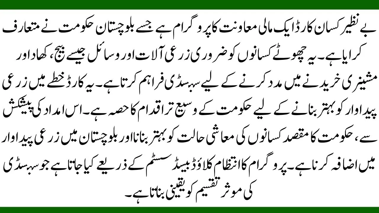The Benazir Kisan Card offers several key benefits to small farmers in Balochistan: