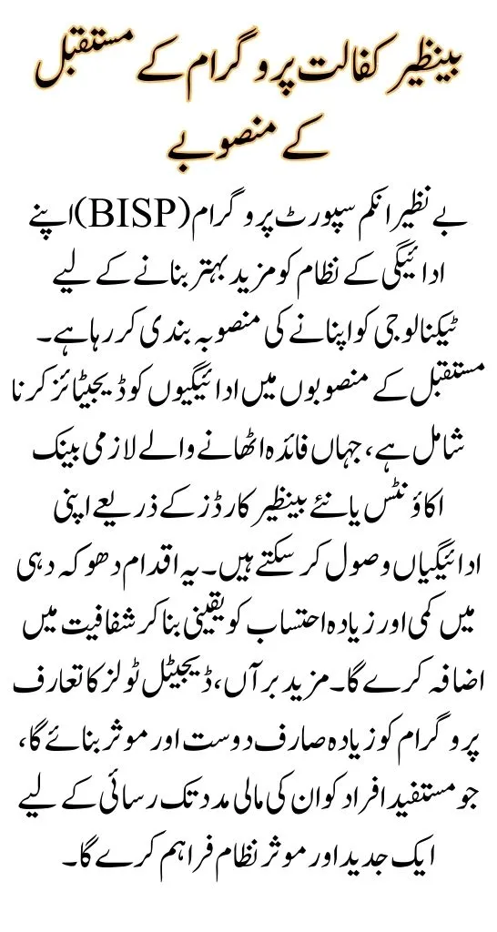 The BISP is embracing technology to enhance the payment system further. Future plans include: