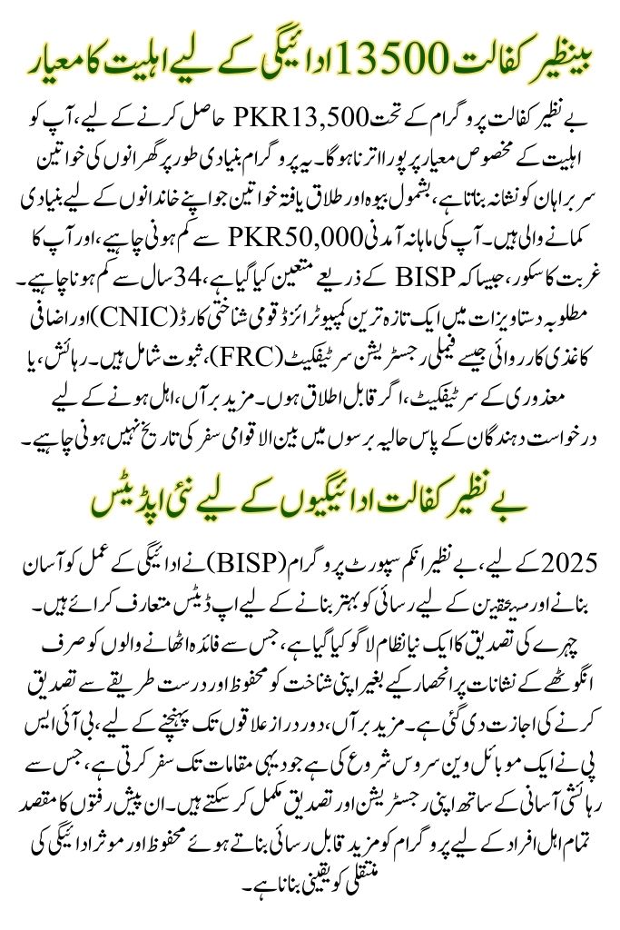Eligibility Criteria for Benazir Kafalat 13500 Payment
