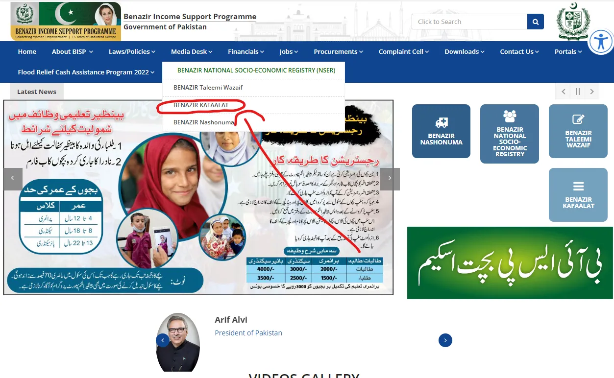 - Select the “Benazir Kafalat” option from the drop-down menu.