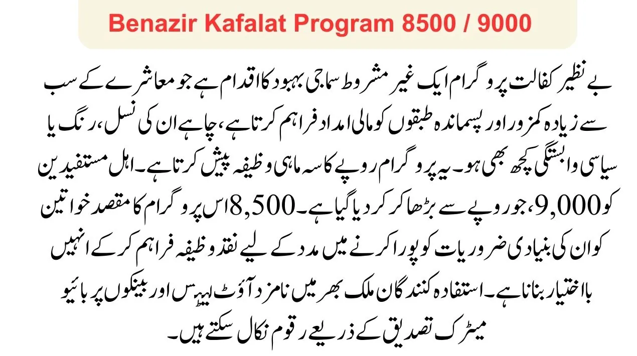 Benazir Kafalat Program 8500 / 9000