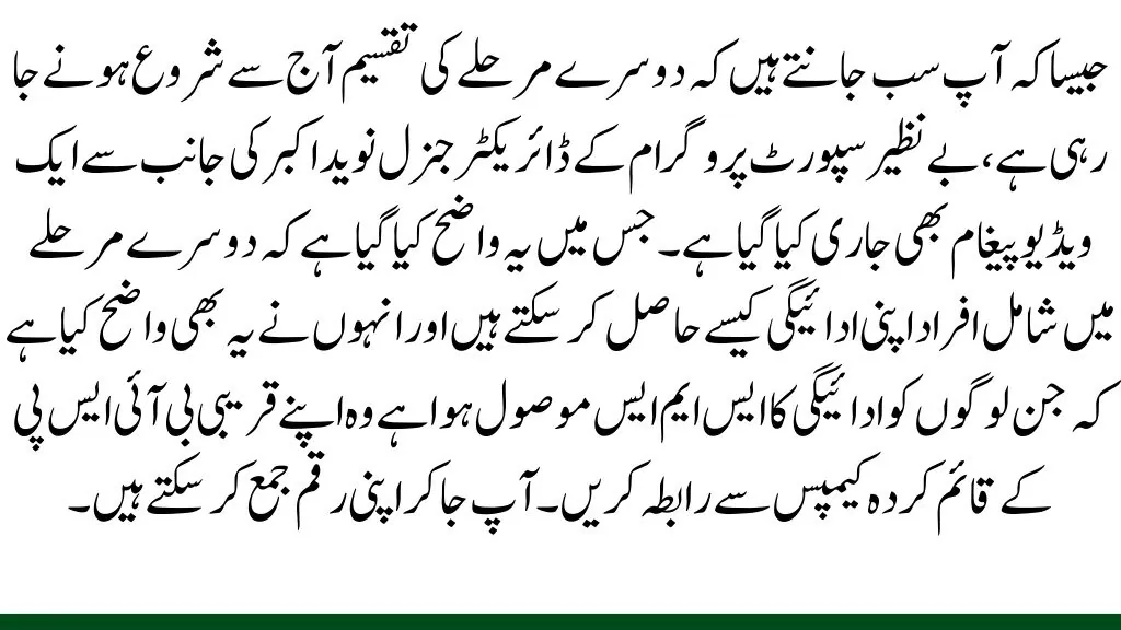 As you all know that second phase disbursement is going to start from today, a video message has also been released by Naveed Akbar, Director General of Benazir Support Programme. In which it is clear how the people involved in the second phase can get their payment and they have also clarified that those who have received the payment sms should contact their nearest BISP established campus. You can go and deposit your money.