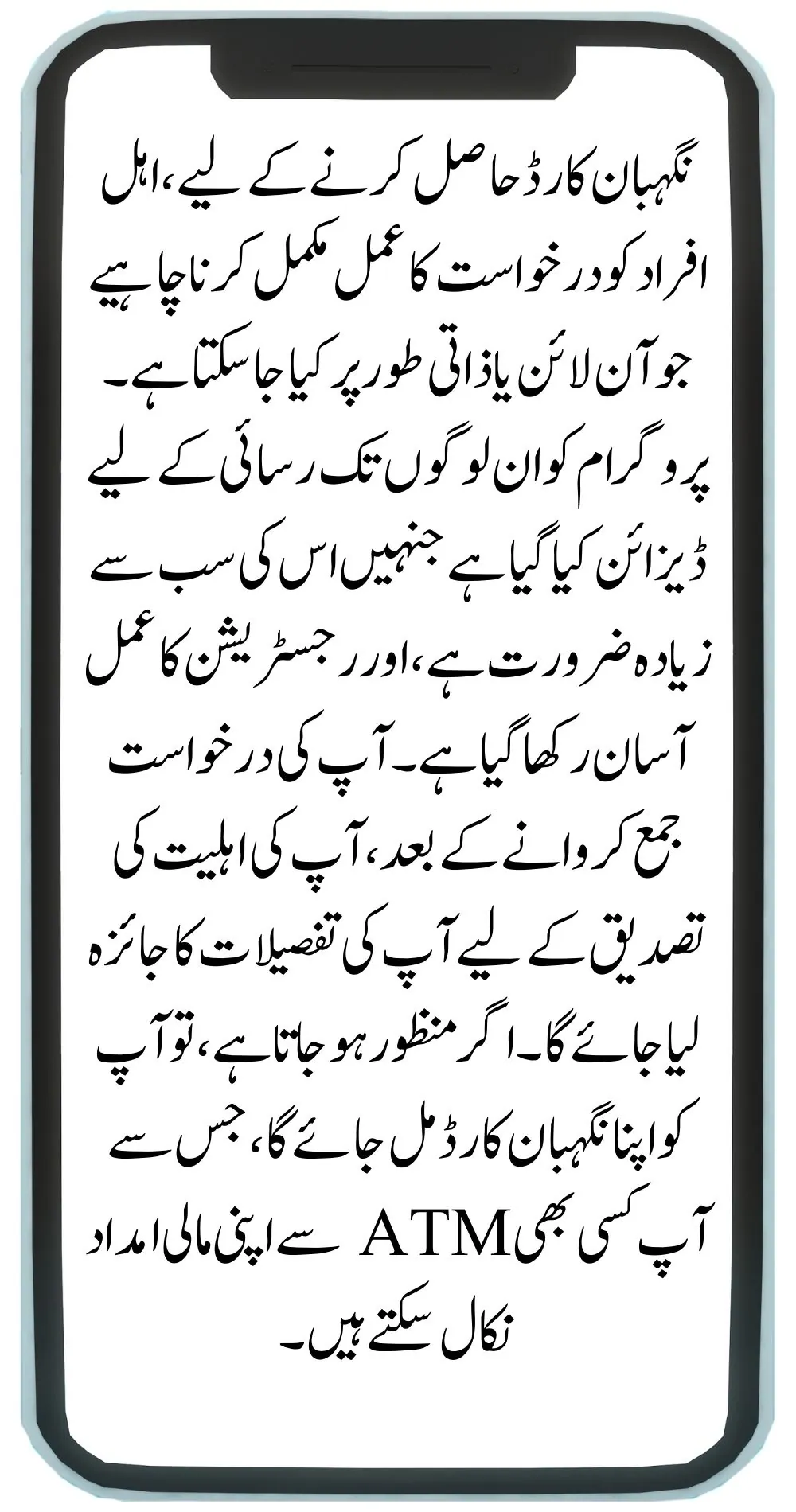 The Negahban Card is a financial aid program launched by the Punjab government to support poor and deserving individuals, especially those who are disabled. Initially created to provide rations during Ramadan, the program was later expanded to offer ongoing financial assistance. Eligible individuals can register for the Negahban Card and receive 12,000 PKR per month, which they can withdraw from any ATM.