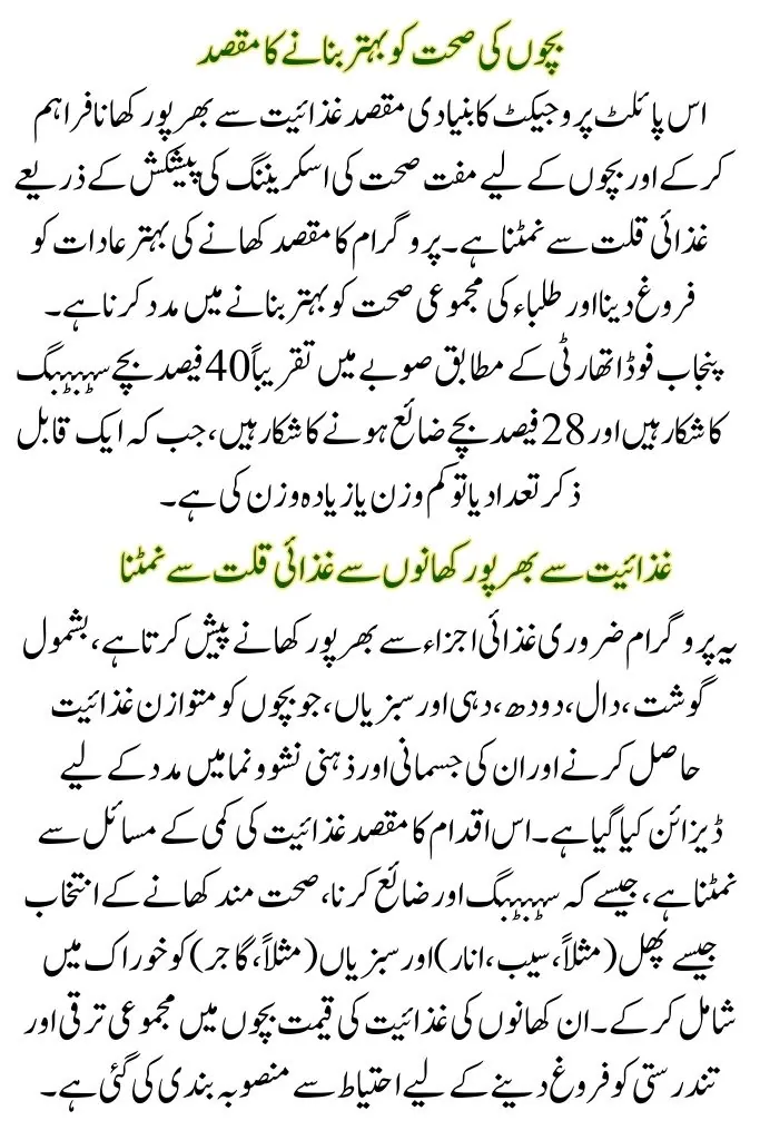 The program aims to improve the health of children by providing free health screenings and nutrition-rich meals in schools across Punjab.