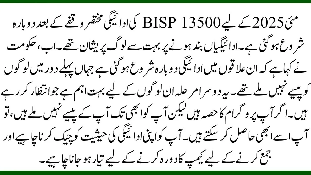 | Payment Restart Info | BISP 13500 January 2026 payment has restarted |