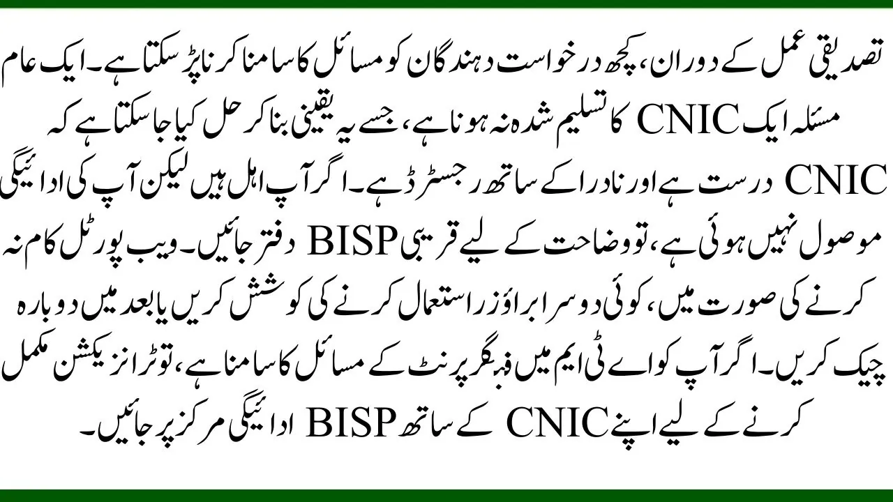 • For assistance, the BISP helpline (8171) is available for further inquiries regarding payments and verification.
