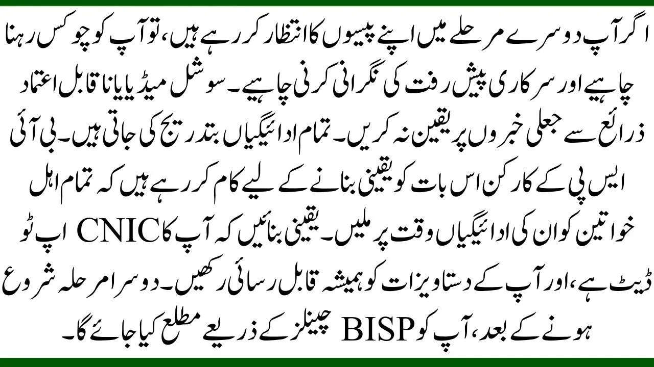 If you are waiting for your money in the second phase, you must be vigilant and monitor official developments. Don’t believe fake news from social media or untrustworthy sources. All payments are made gradually. The BISP workers are working to ensure that all qualified women receive their payments on time. Make sure your CNIC is up to date, and always have your documents accessible. Once the second phase begins, you will be notified via BISP channels.