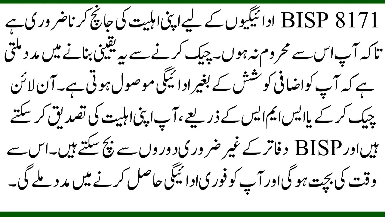 It is important to check your eligibility for BISP 8171 payments so that you don’t miss out. Checking helps to ensures you receive payment without extra effort. By checking online or via SMS, you can confirm your eligibility and avoid unnecessary visits to BISP offices. This will save time and help you get your payment quickly.