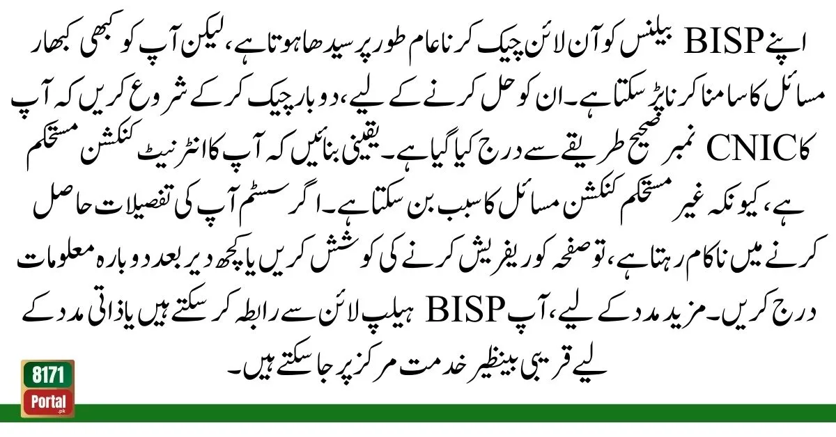 While checking your BISP balance online is typically hassle-free, you may encounter some issues. Here are some troubleshooting steps: