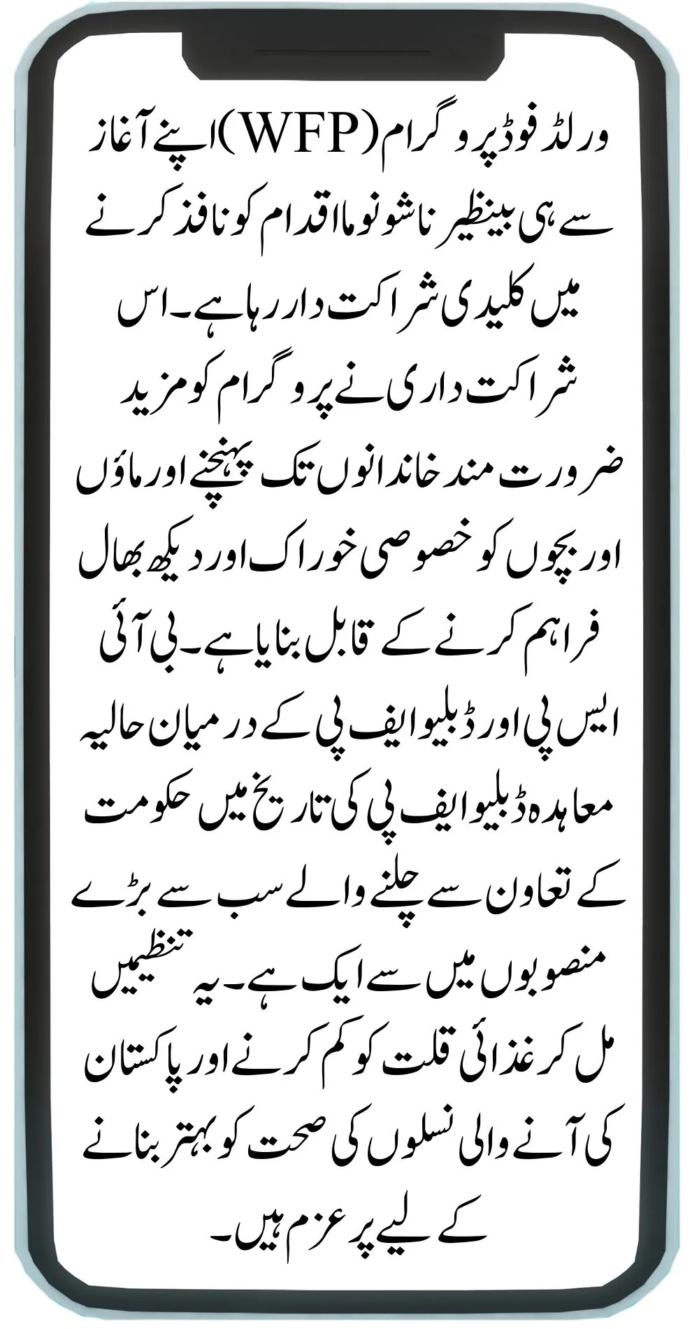 The World Food Programme (WFP) has been a key partner in implementing the Benazir Nashonuma initiative since its beginning. This partnership has enabled the program to reach more families in need and provide specialized food and care to mothers and children. The recent agreement between BISP and WFP is one of the largest government-funded projects in WFP’s history. Together, these organizations are committed to reducing malnutrition and improving the health of Pakistan’s future generations.
