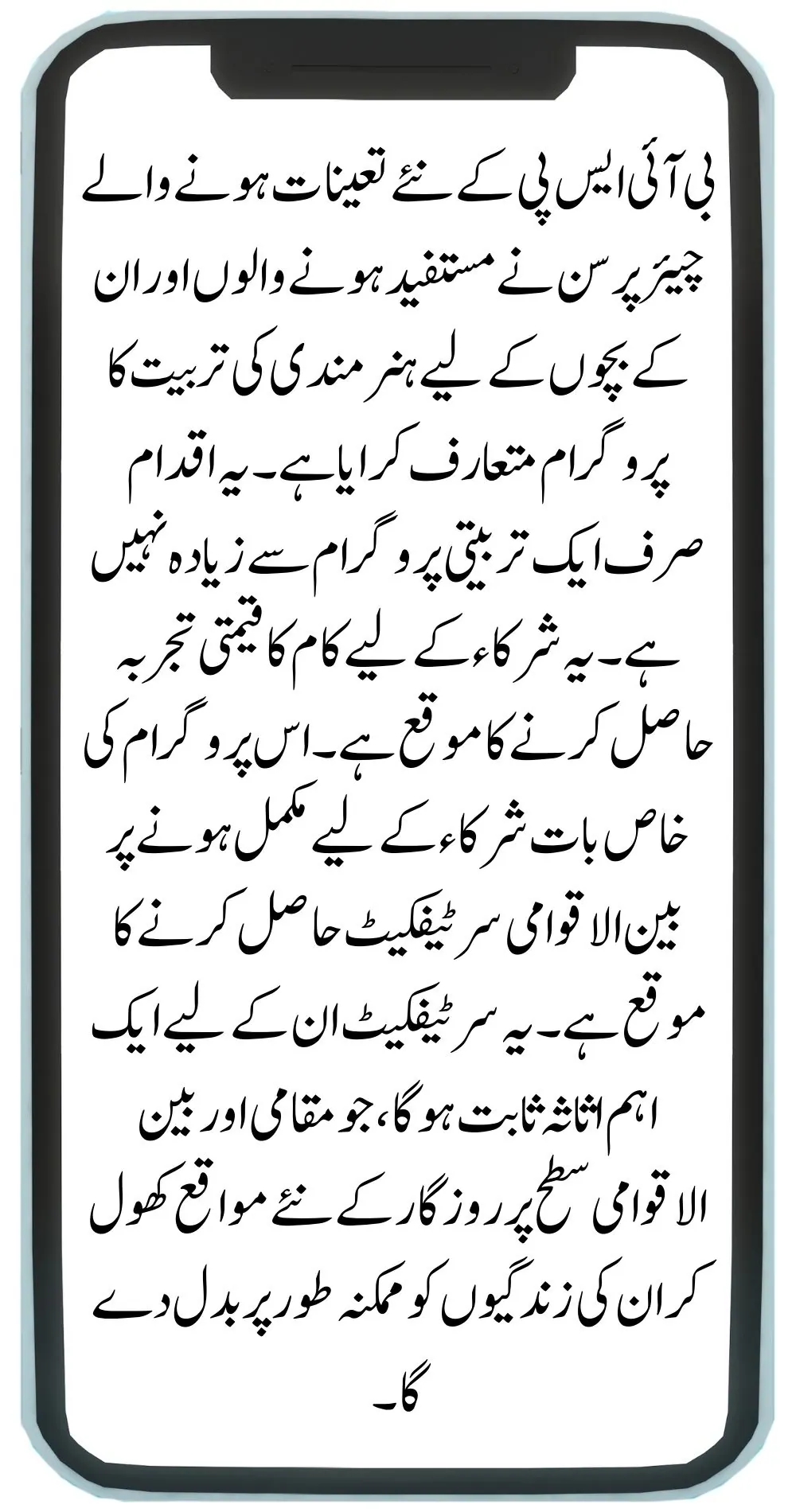 The newly appointed chairperson of BISP has introduced a skill training program for the beneficiaries and their children. This initiative is more than just a training program; it’s a chance for participants to gain valuable work experience. The highlight of this program is the opportunity for participants to earn an international certificate upon completion. This certificate will be a significant asset for them, potentially transforming their lives by opening up new opportunities for employment, both locally and internationally.