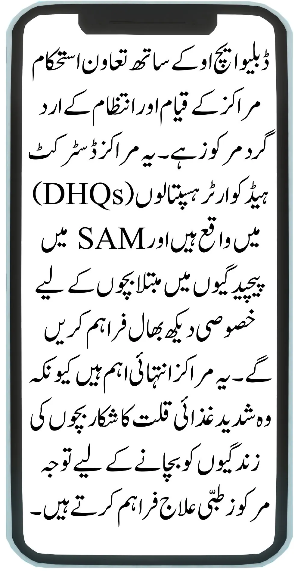 The collaboration with WHO is centered around the establishment and management of stabilization centers. These centers are located at District Headquarter Hospitals (DHQs) and will offer specialized care for children suffering from SAM with complications. These centers are crucial because they provide focused medical treatment to save the lives of children who are severely malnourished.