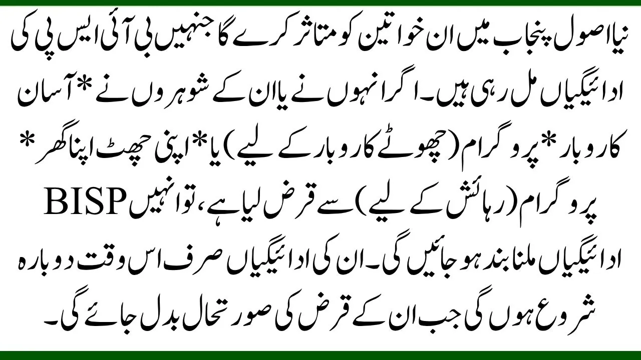 The new rule in Punjab will affect women who are receiving BISP payments. If they or their husbands have taken a loan from either the Asaan Karobar program (which provides business loans) or the Apni Chhat Apna Ghar program (which offers housing loans), they will no longer receive their monthly BISP payments. This rule is in place to ensure that the financial aid reaches those who need it most. If their loan situation changes, such as paying off or canceling the loan, they can apply again to receive BISP payments.