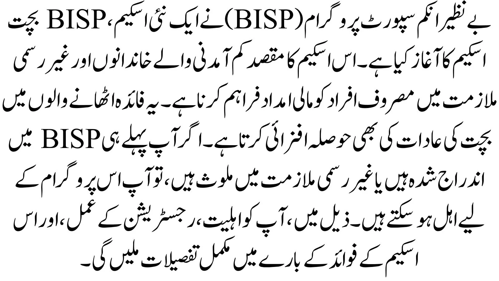 | Target Audience | BISP beneficiaries, informal workers |