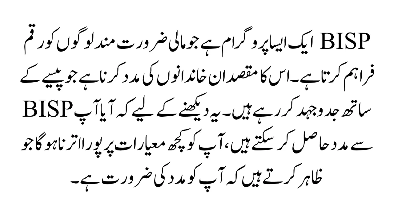 BISP is a program that offers money to people who are in financial need. It’s meant to help families who are struggling with money. To see if you can get help from BISP, you have to meet certain criteria that show you need support.