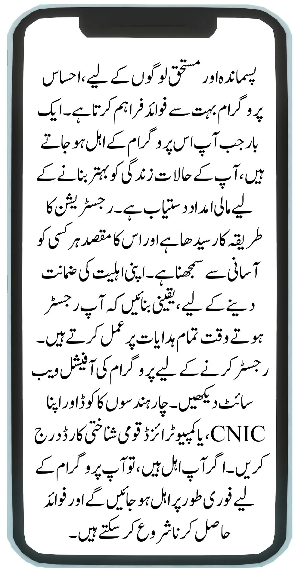 See the program’s official website to register. Enter a four-digit code and your CNIC, or Computerised National Identity Card. Should you be qualified, you will instantly be eligible for the program and can begin receiving benefits.