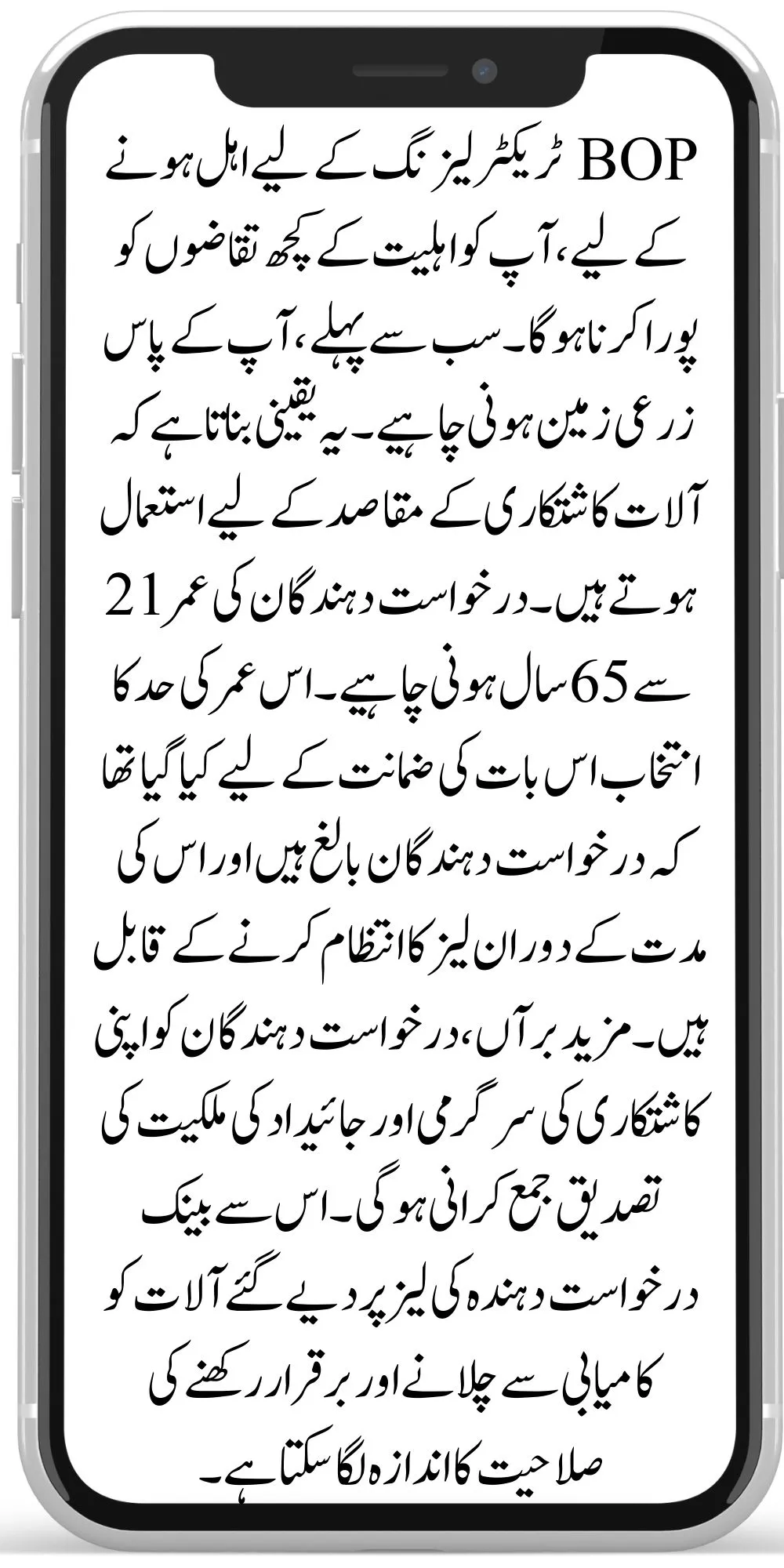 The Bank of Punjab offers BOP Tractor Leasing, a service that assists farmers in purchasing tractors and farm equipment. It is intended to make it easier for farmers to obtain the machinery they require without paying the whole price upfront. Instead, customers might lease the equipment and pay over time. This program attempts to promote agricultural development in Pakistan by providing affordable financing choices.
