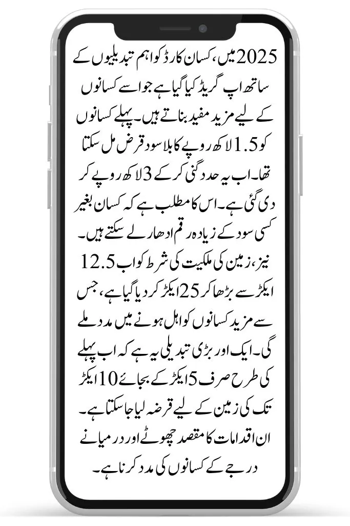 The Punjab government, under the leadership of Chief Minister Maryam Nawaz Sharif, has announced new updates to the Chief Minister Punjab Kisan Card for 2025. These updates are specially designed to help farmers in Punjab. The new features include higher loan limits, no processing fees, and extra support for buying seeds, diesel, and fertilizers. This program aims to make farming easier and more successful for small and large farmers. In this article, we will explain all the changes and benefits of the Kisan Card in simple language so every farmer can understand.