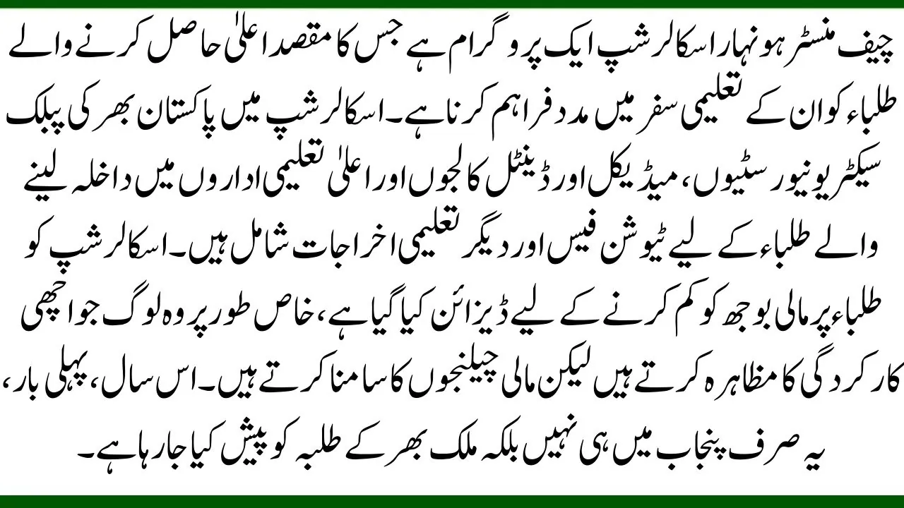 The Chief Minister’s Honhaar Scholarship is a program aimed at supporting high-achieving students in their academic journey. The scholarship covers tuition fees and other educational costs for students enrolled in public sector universities, medical and dental colleges, and higher education institutions across Pakistan. The scholarship is designed to ease the financial burden on students, especially those who perform well but face financial challenges. This year, for the first time, it is being offered to students nationwide, not just those in Punjab.