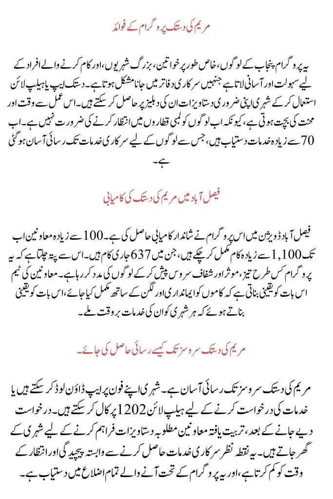 The Maryam Ki Dastak Program is a great step towards improving the governance system in Punjab. By using technology and providing services at people’s doorsteps, the Punjab government has made it easier for citizens to get important documents and services without leaving their homes. This program not only saves time but also ensures transparency in the delivery of services, making it a model for future public service programs in the country.