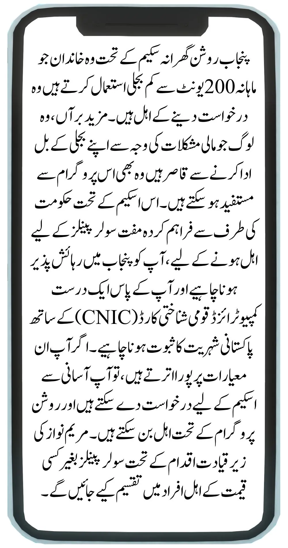 Households in Punjab that use less than 200 units of electricity per month, have no government employees in the family and meet specific income and land ownership criteria are eligible for the scheme.