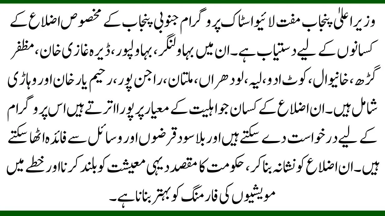 The CM Punjab Free Livestock Program is available to farmers in specific districts of South Punjab. These include Bahawalnagar, Bahawalpur, Dera Ghazi Khan, Muzaffargarh, Khanewal, Kot Addu, Layyah, Lodhran, Multan, Rajanpur, Rahim Yar Khan, and Vehari. Farmers from these districts who meet the eligibility criteria can apply for the program and benefit from the interest-free loans and resources. By targeting these districts, the government aims to uplift the rural economy and improve livestock farming in the region.