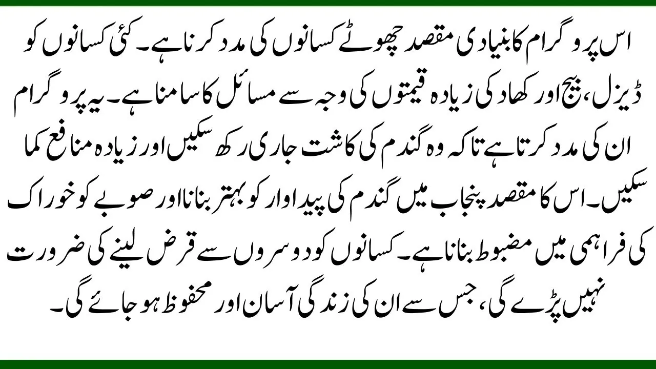 The main goal of this program is to help small farmers. Many farmers face problems due to high prices of diesel, seeds, and fertilizers. This program supports them so they can continue growing wheat and earn more profit. It also aims to improve wheat production in Punjab and make the province stronger in food supply. Farmers will not need to take loans from others, which makes their life easier and safer.