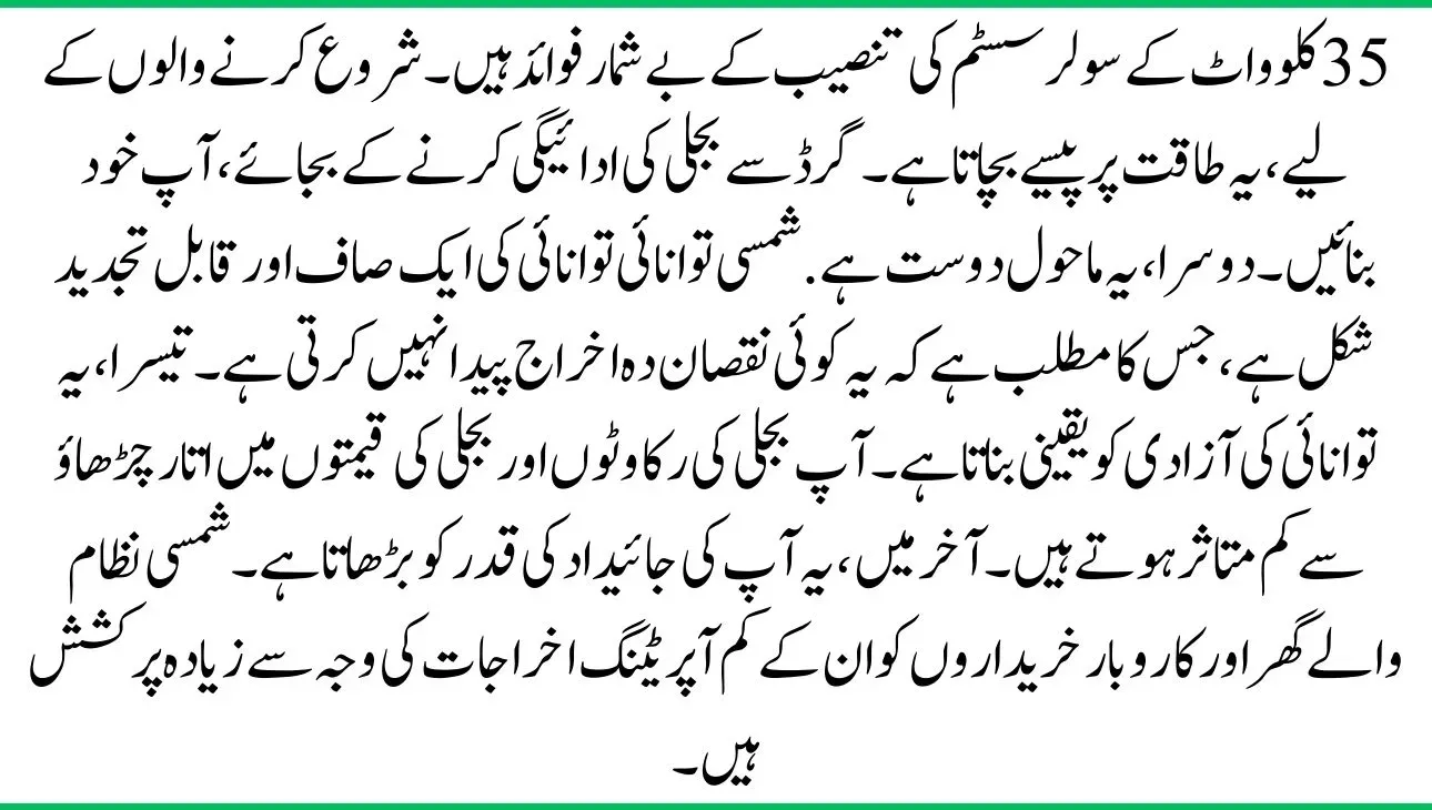 Installing a 20 KW solar system has various benefits. For starters, creating your own power helps to minimize your electricity expenses. This is especially advantageous in Pakistan, where electricity is expensive. Second, solar energy is eco-friendly, lowering your carbon footprint and contributing to a cleaner environment. Furthermore, solar systems boost the value of your home and provide a consistent supply of energy during power outages. The long-term savings and environmental benefits make it an excellent investment.
