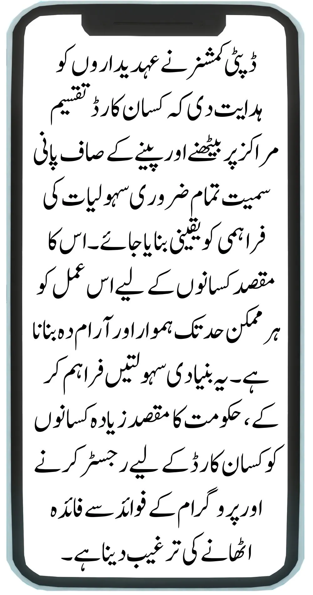 The Deputy Commissioner directed the officials to ensure that all necessary facilities, including seating and clean drinking water, are provided at the Kisan Card Distribution Centers. The goal is to make the process as smooth and comfortable as possible for the farmers. By providing these basic amenities, the government aims to encourage more farmers to register for the Kisan Card and take advantage of the program’s benefits.