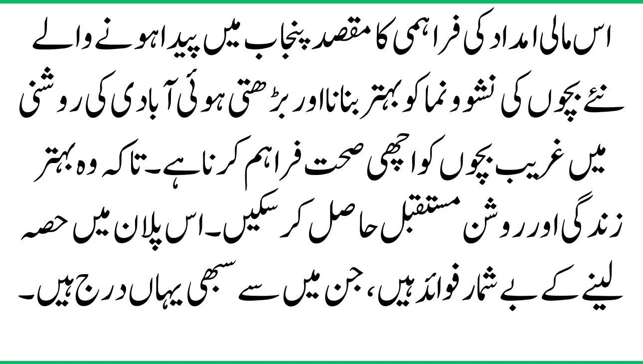 The goal of providing this financial aid is to improve the growth of new children born in Punjab and to offer good health to poor children in light of the growing population. So they can have a better life and a brighter future. There are numerous benefits to participating in this plan, all of which are listed here.