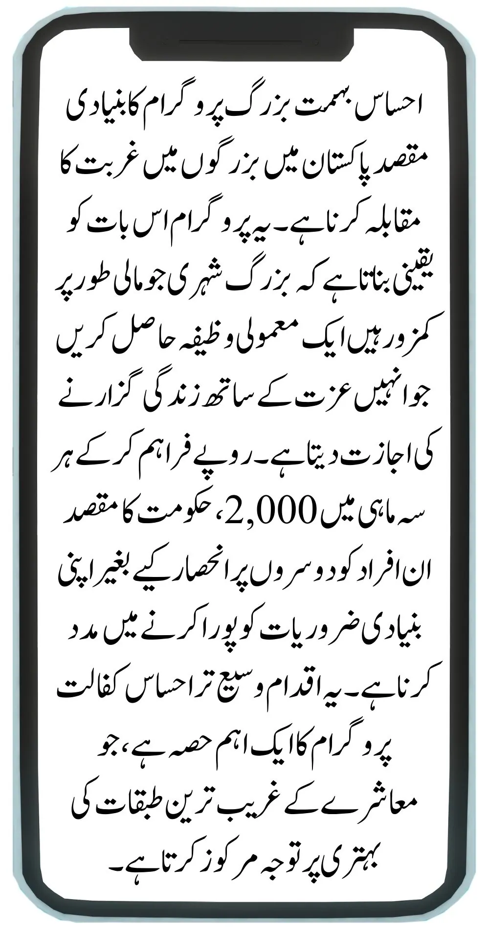 The program is open to Pakistani citizens who are 65 years or older, unemployed, and not receiving any government pension.
