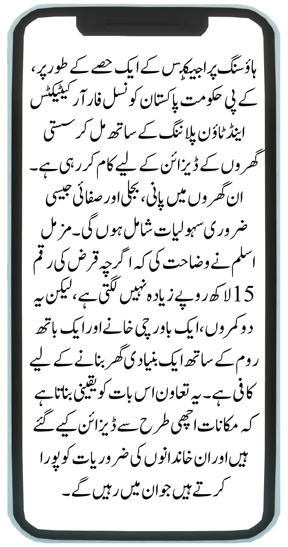 As part of the housing projects, the KP government is working with the Pakistan Council for Architects and Town Planning to design affordable houses. These houses will include essential amenities like water, electricity, and sanitation. Muzammil Aslam explained that while the loan amount of Rs1.5 million may not seem large, it is sufficient to build a basic house with two rooms, a kitchen, and a bathroom. This collaboration ensures that the houses are well-designed and meet the needs of the families who will live in them.