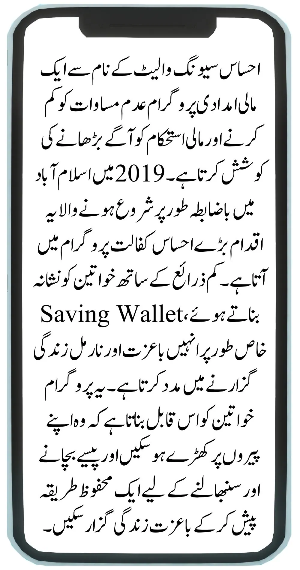 A financial aid program called the Ehsaas Saving Wallet seeks to lower inequality and advance financial stability. Starting formally in Islamabad in 2019, this initiative falls within the larger Ehsaas Kafalat program. Targeting women with low means, the Saving Wallet especially helps them to lead a respectable and normal life. The program enables women to stand on their own feet and generate a respectable living by offering a safe approach to saving and handling money.