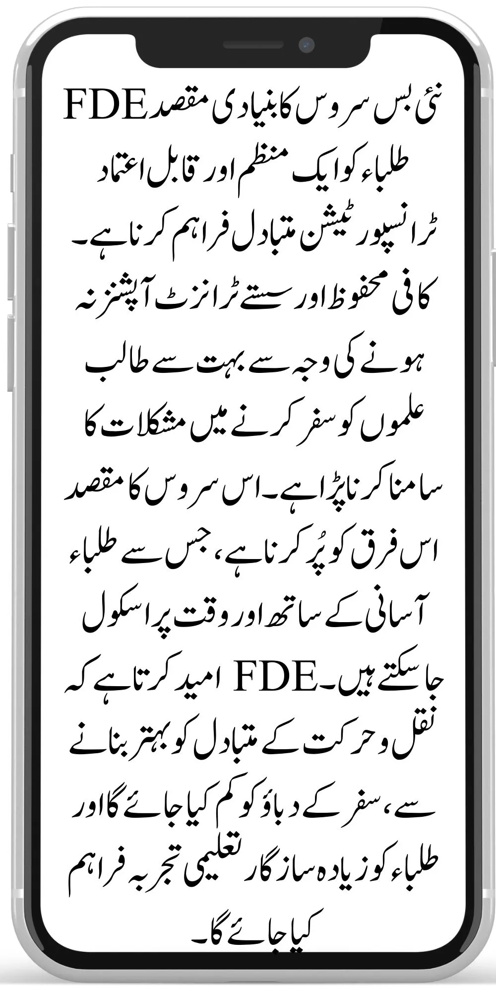 The new bus service has several critical characteristics to ensure its effectiveness. Buses will take specified routes through various areas where FDE schools are located. Students must adhere to a prescribed schedule, which includes designated pick-up and drop-off times. The FDE has ensured that the buses are well-maintained and driven by responsible drivers to ensure their safety. Families will receive detailed information on bus stops and schedules to help them plan their travels more effectively. This coordinated system strives to provide a dependable and efficient transportation network for students.