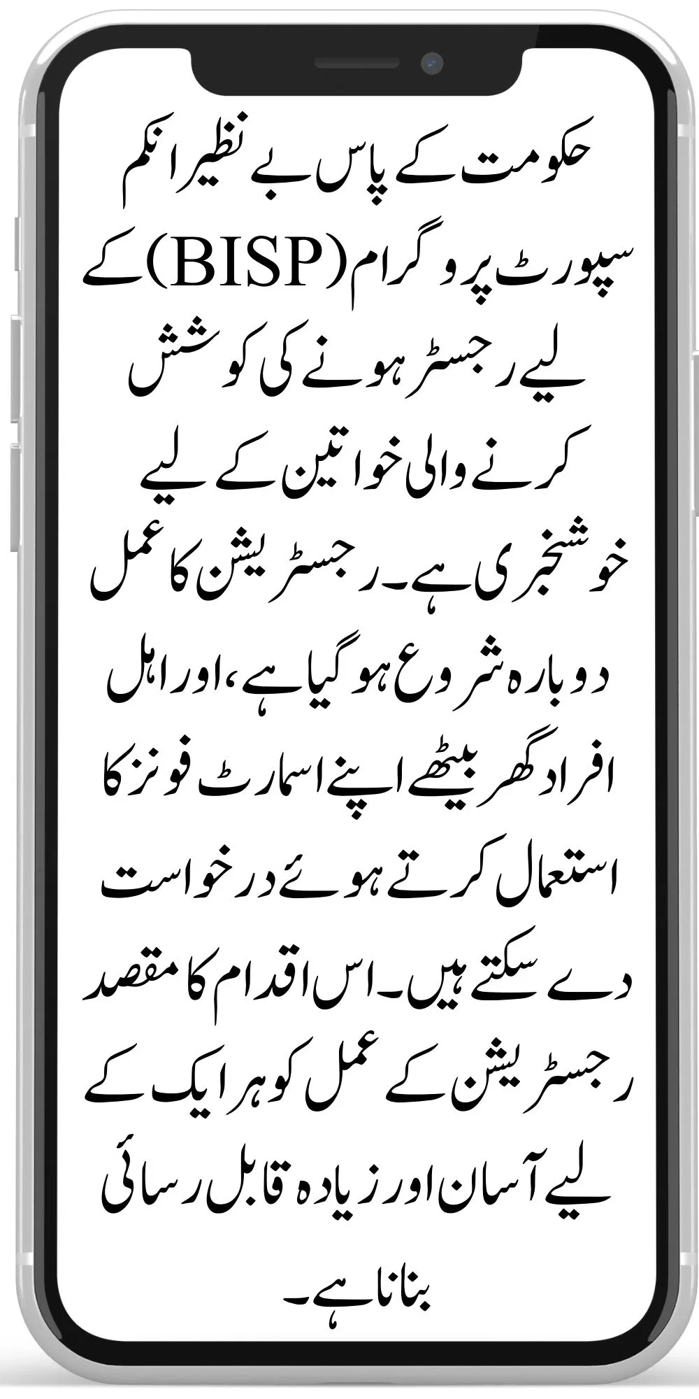 The government has good news for women trying to register for the Benazir Income Support Program (BISP). The registration process has started again, and eligible individuals can apply using their smartphones from home. This initiative aims to make the registration process easier and more accessible for everyone.