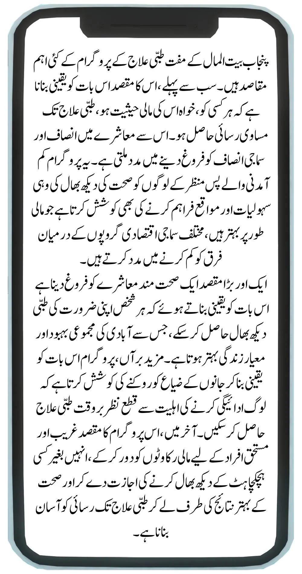 The Punjab Bait-ul-Maal program is a significant effort by the Government of Pakistan to provide free medical treatment to poor people who cannot afford healthcare. Many low-income families in Punjab suffer from serious health issues like cancer, kidney disease, heart disease, and diabetes. The cost of treating these diseases is often too high for them, leading to unnecessary suffering and even preventable deaths.