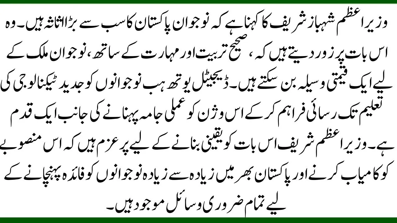 PM Shehbaz Sharif believes that the youth are one of Pakistan’s greatest assets. He emphasizes that, with the right training and skills, young people can become a valuable resource for the country. The Digital Youth Hub is a step toward realizing this vision by providing youth with access to modern technology education. PM Sharif is committed to ensuring that this project has all the necessary resources to succeed and benefit as many young people as possible across Pakistan.