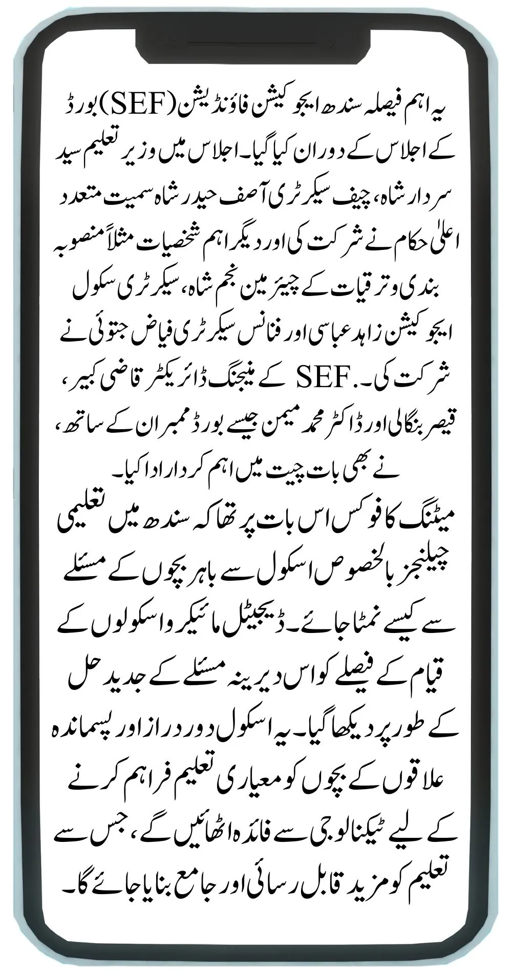 The focus of the meeting was on how to effectively address the educational challenges in Sindh, particularly the issue of out-of-school children. The decision to establish digital micro-schools was seen as a modern solution to this longstanding problem. These schools will leverage technology to provide quality education to children in remote and underprivileged areas, making education more accessible and inclusive.