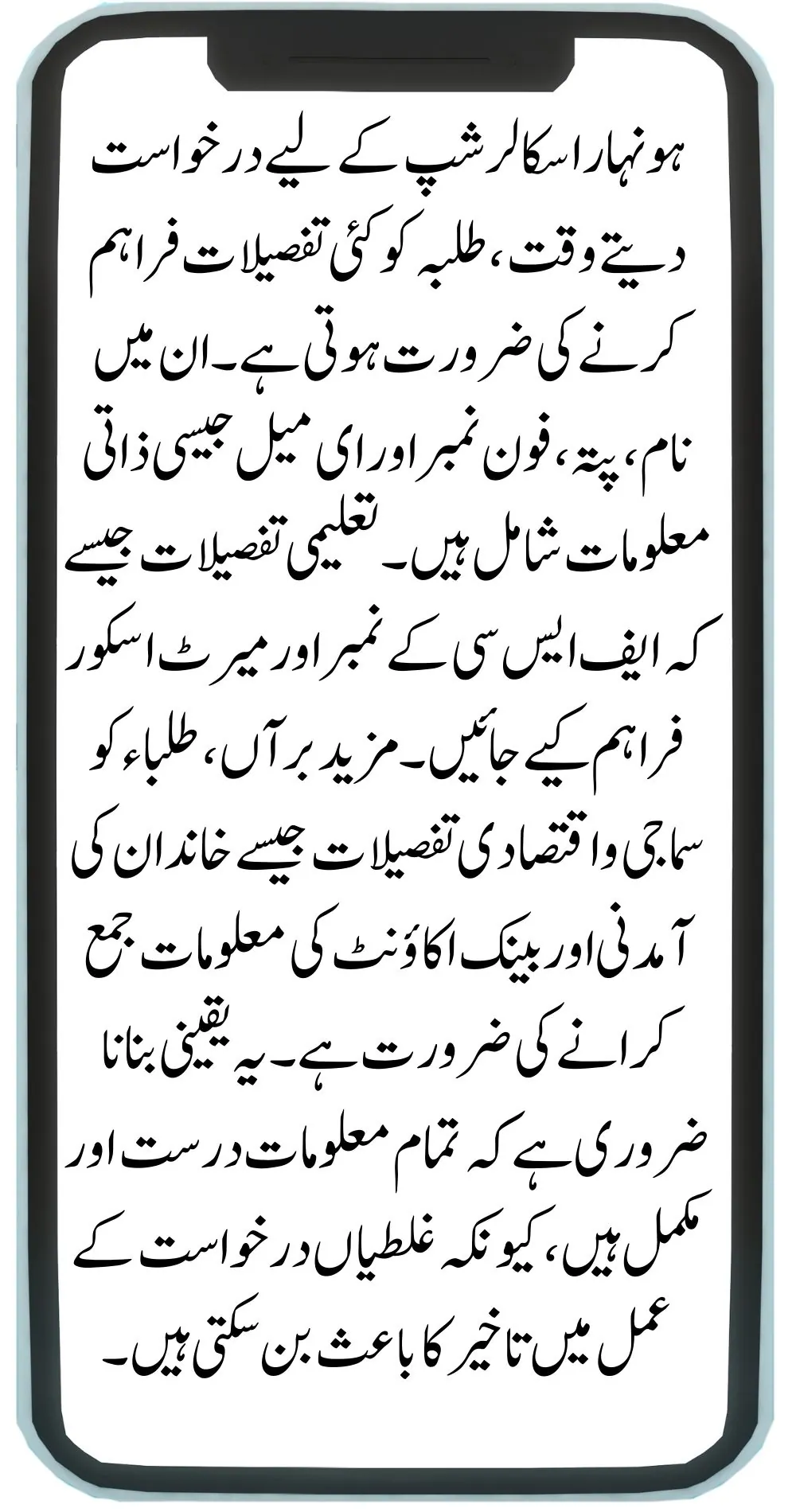 When applying for the Honhaar Scholarship, students need to provide several details. These include personal information like name, address, phone number, and email. Academic details such as FSC marks and merit scores must be provided. Moreover, students need to submit socio-economic details like family income and bank account information. It’s important to ensure that all the information is correct and complete, as mistakes can lead to delays in the application process.