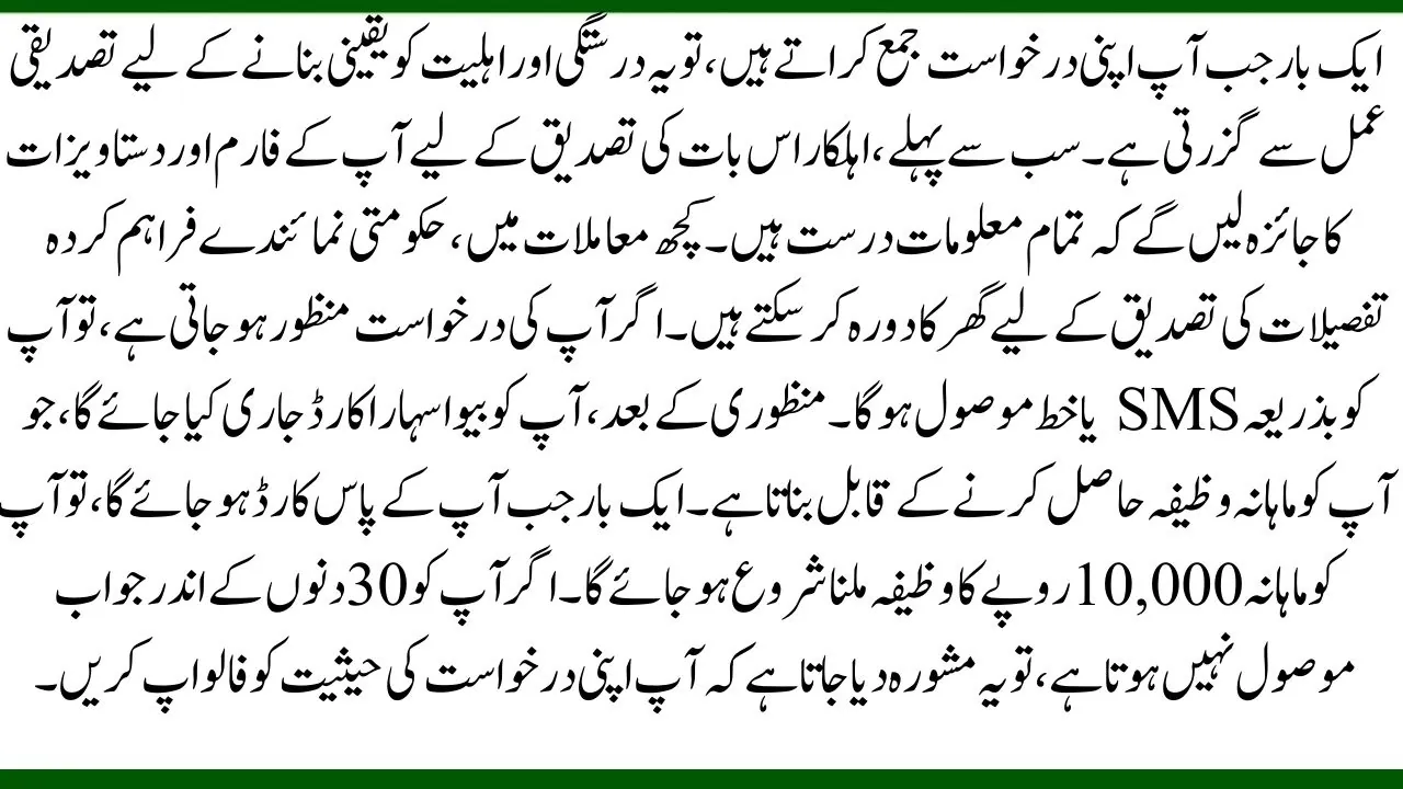 • Stipend Distribution: After getting your card, you will receive the monthly stipend of PKR 10,000.