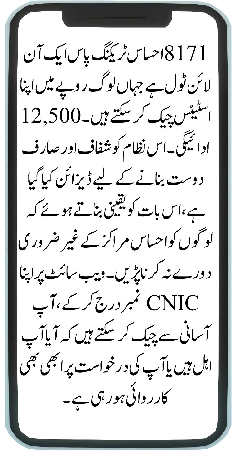 The Ehsaas Program is one of the largest social welfare programs in Pakistan. It provides financial help to families in need, giving them Rs. 12,500 to support their basic needs. To make it easy for people to check their eligibility and payment status, the government has introduced an online system called the Ehsaas Tracking Pass, which can be accessed through the 8171 portal. This helps people check their application without visiting an Ehsaas center, saving both time and effort.