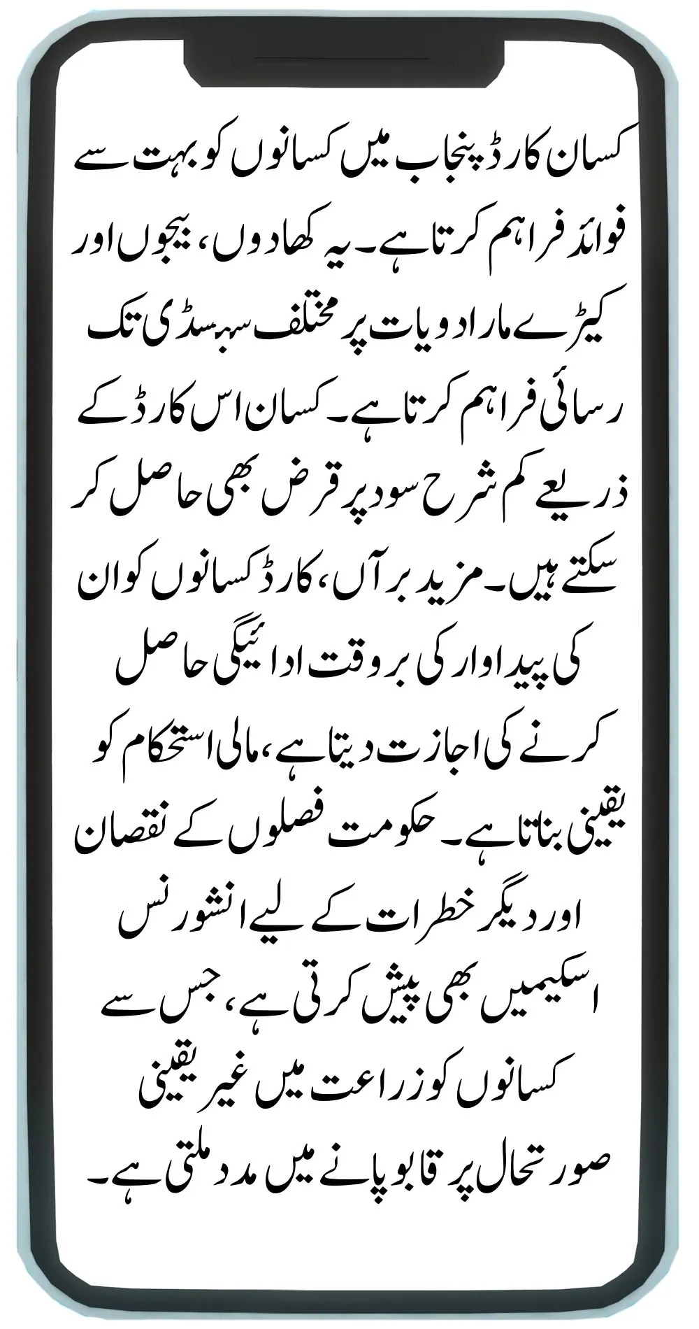 The Kisan Card is an initiative by the Punjab government to support farmers. This card provides financial assistance, subsidies, and other benefits to farmers, helping them improve their agricultural practices and overall livelihood. The card aims to make it easier for farmers to access resources and government schemes.