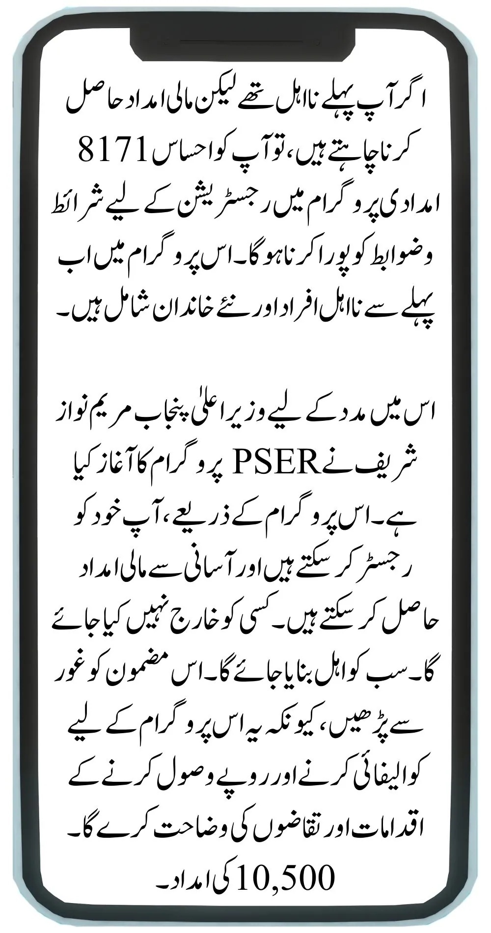 To register for the new Ehsaas 8171 program, you must meet specific eligibility criteria. Follow these simple steps to determine if you qualify: